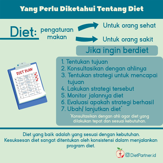 Sebelum berdiet kita harus tahu sebenarnya apakah tujuan diet kita. Kemudian untuk mencapai tujuan tersebut kita harus menyusun strategi, meliputi kebutuhan gizi serta prinsip dan syarat-syarat dietnya.